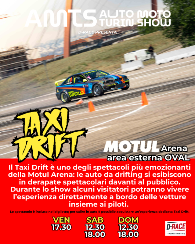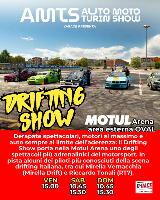 AMTS – Auto Moto Turin Show 2026 mette al centro lo spettacolo dal vivo nella pista esterna. Qui si svolgeranno spettacoli di stuntman, drift e Taxi Drift aperto al pubblico, mentre crew internazionali e show studiati ad hocrendono ogni area dell’evento interessante e sorprendente. Il pubblico vivrà un’esperienza immersiva che unisce passione per i motori e spettacolo, con emozioni, novità e momenti unici che trasformano la visita in un’esperienza coinvolgente e memorabile.Con l’apertura dello storico Padiglione 2, si aggiungono oltre 18.000 m² di esposizione a Padiglione 3 e Oval, offrendo un’esperienza che unisce storia e innovazione. AMTS 2026 è un evento pensato per chi vuole vivere l’adrenalina dei motori e non perdere nessuna emozione.