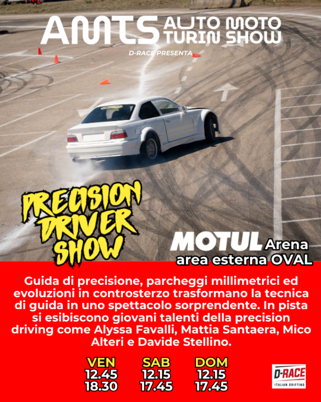 π Tutti gli show sono inclusi con il biglietto di ingresso di AMTS Auto Moto Turin Show